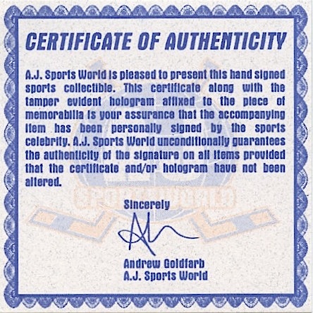 Authentication: AJ's Sports World COA
