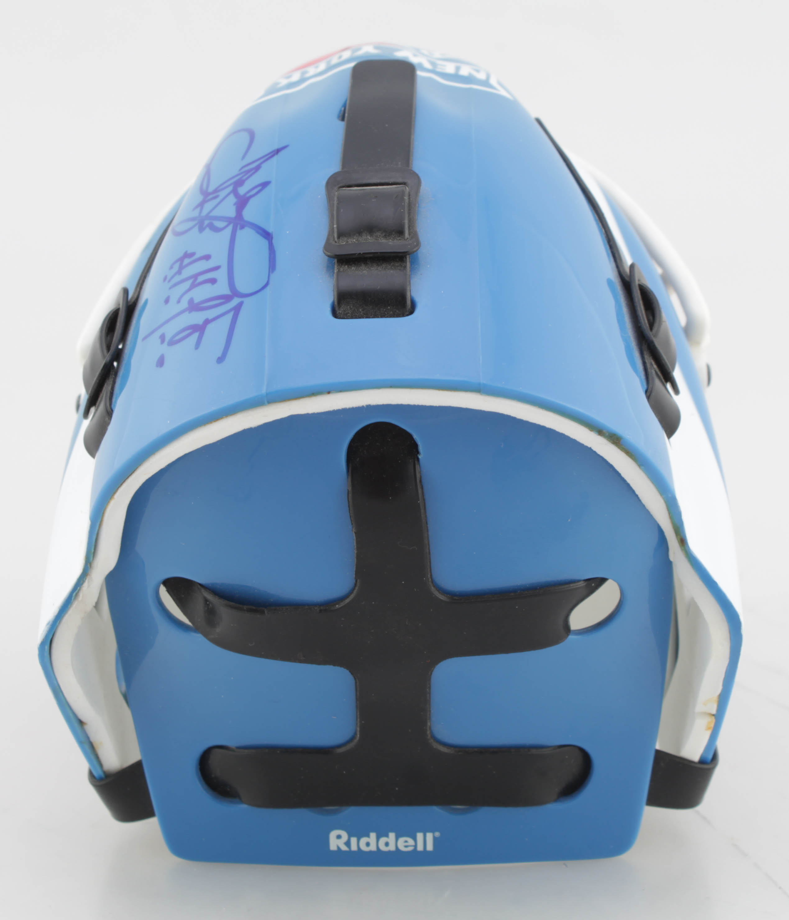 Riddell New York Rangers mini helmet has been hand-signed by Eddie Giacomin.