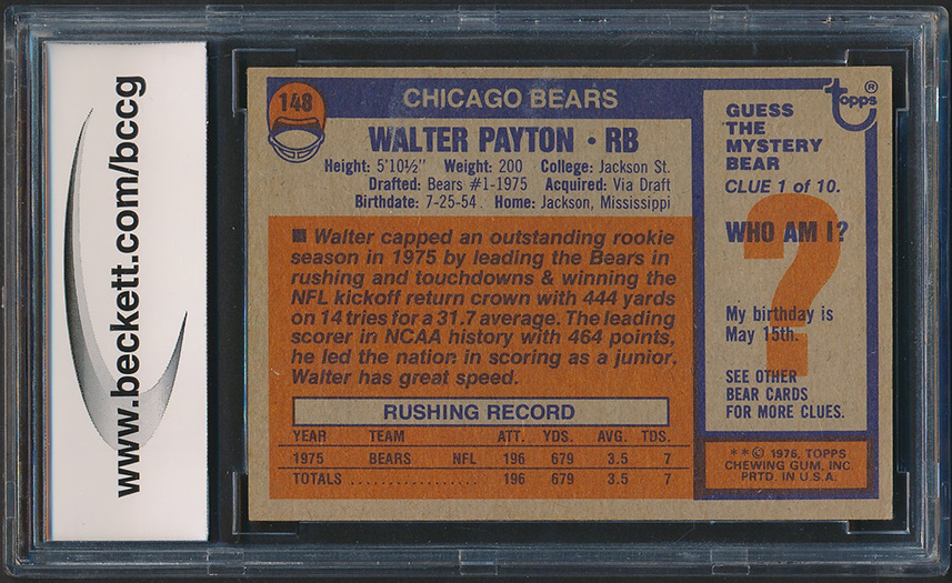 Walter Payton 1976 Topps #148 RC (BCCG 8)