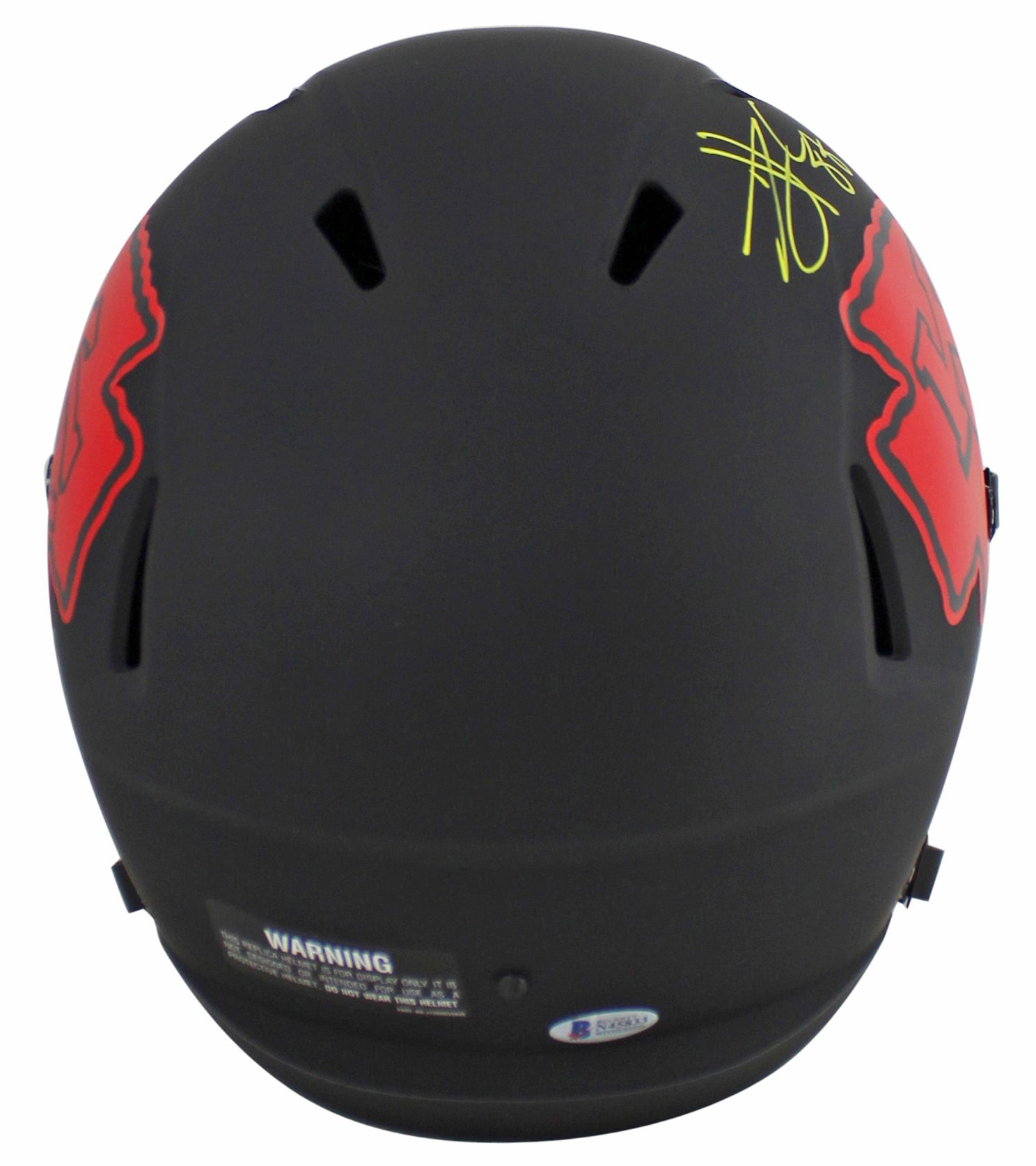 Riddell Kansas City Chiefs full-size replica Eclipse Alternate speed helmet has been hand-signed and inscribed by Travis Kelce.
