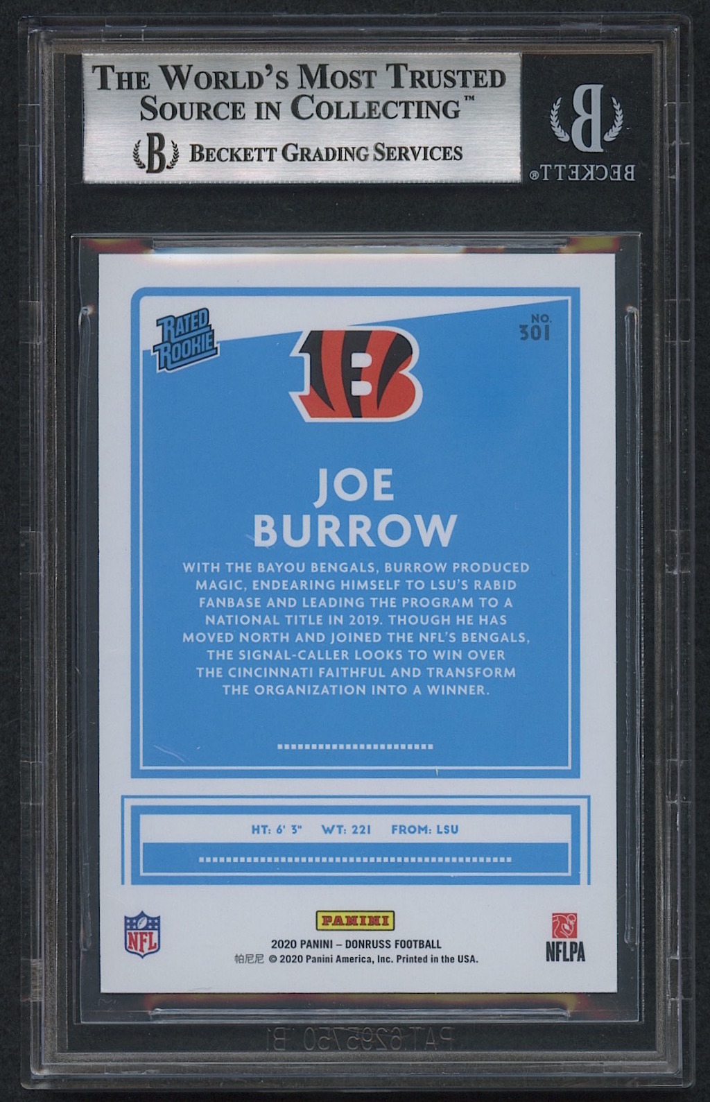 Joe Burrow 2020 Donruss #301 RR RC (BGS 9)