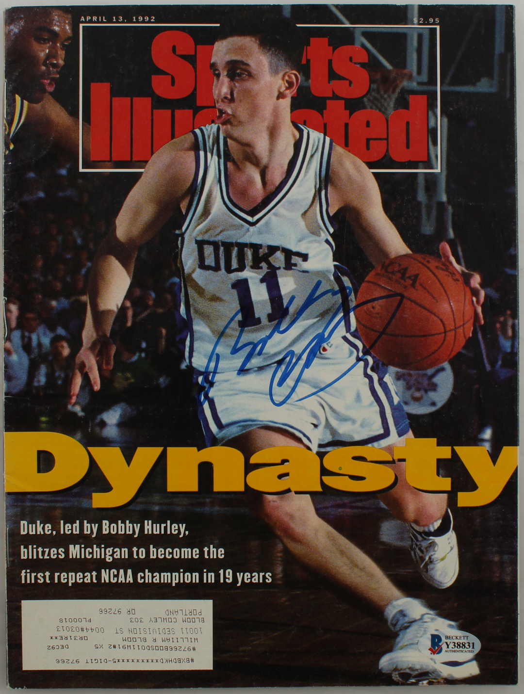 April 13, 1992 issue of Sports Illustrated magazine has been hand-signed by Bobby Hurley (Duke Blue Devils).