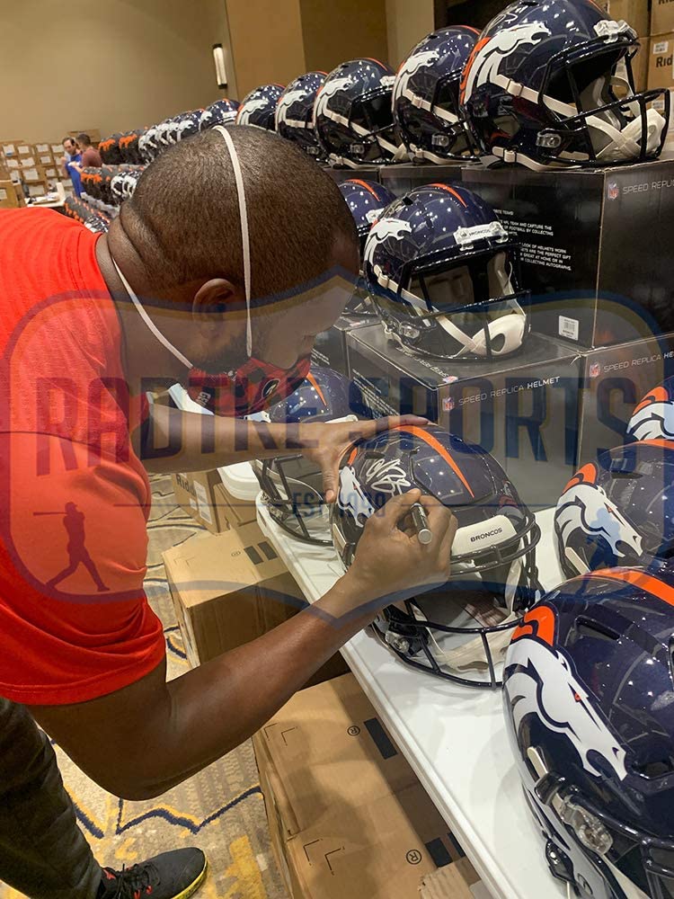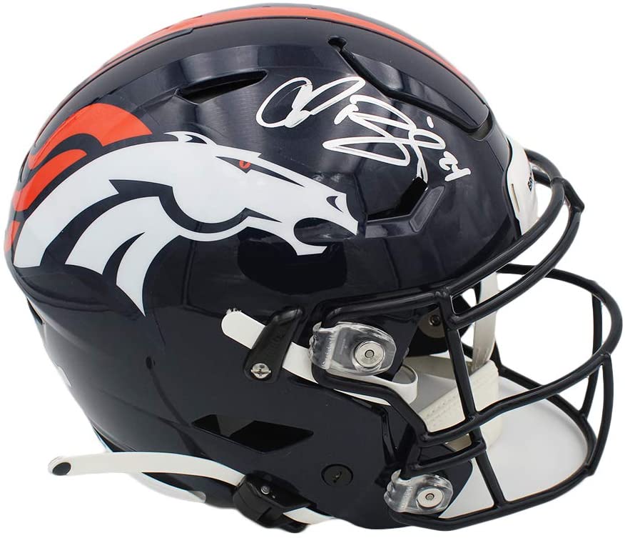 Riddell Denver Broncos full-size authentic on-field SpeedFlex helmet. Hand-signed by Champ Bailey (HOF).