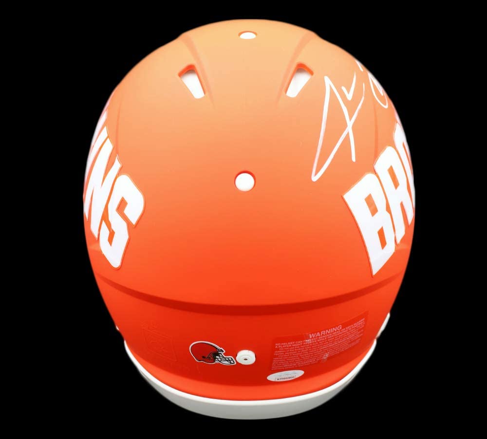 Riddell Cleveland Browns full-size authentic on-field AMP Alternate speed helmet. Hand-signed by Jarvis Landry.