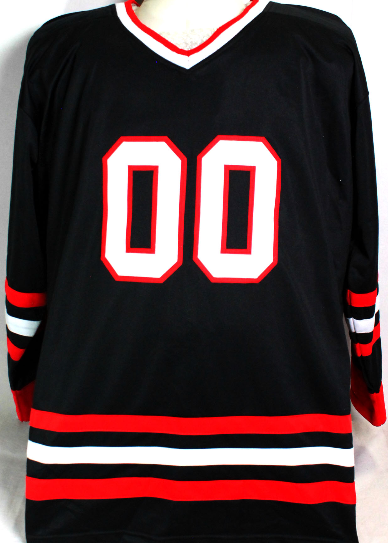 Custom on-ice style jersey. Everything is sewn on, size XL. Hand-signed by Chevy Chase (Clark Griswold).
