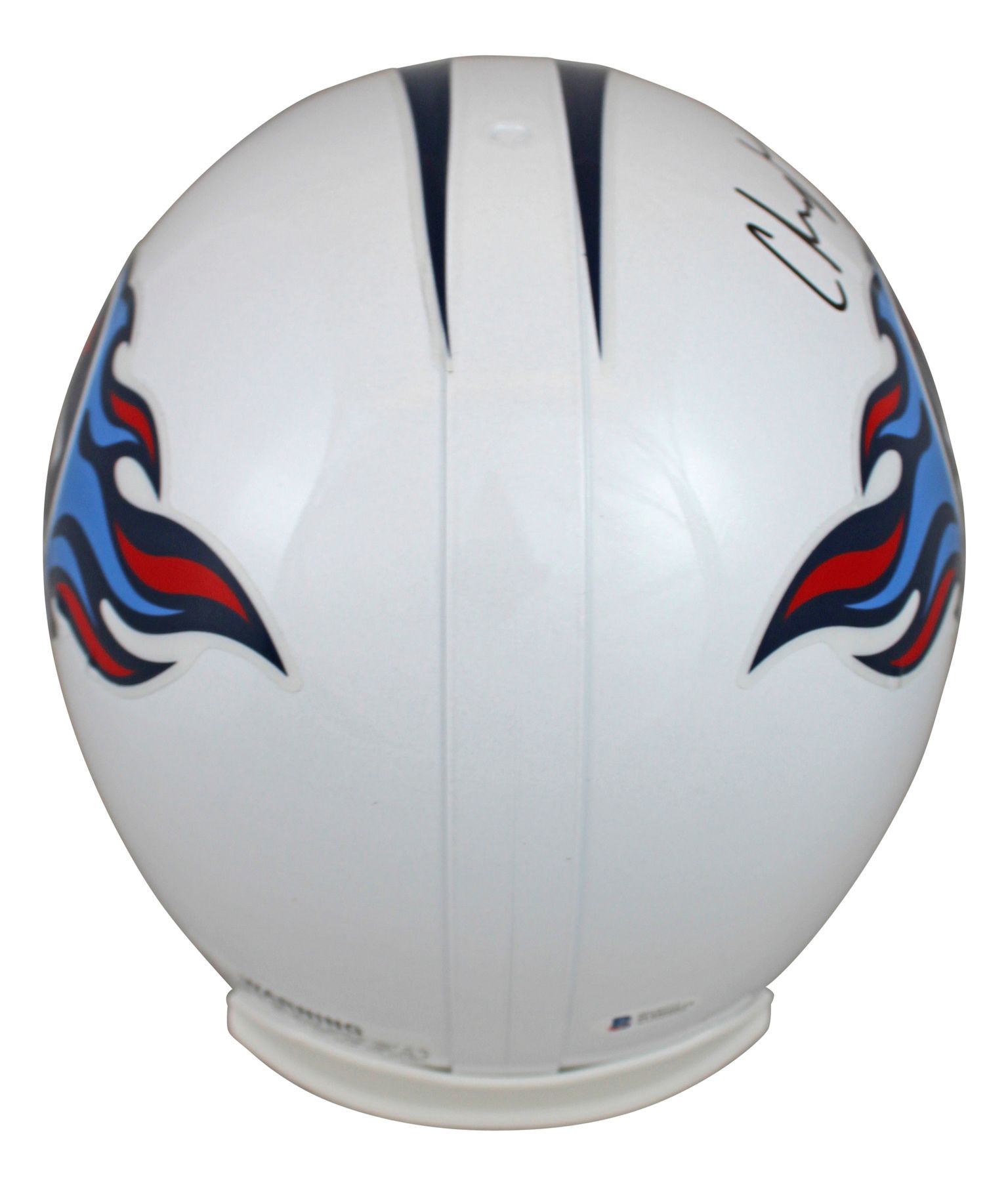 Riddell Tennessee Titans full-size throwback replica helmet. Has been hand-signed by Chris Johnson.
