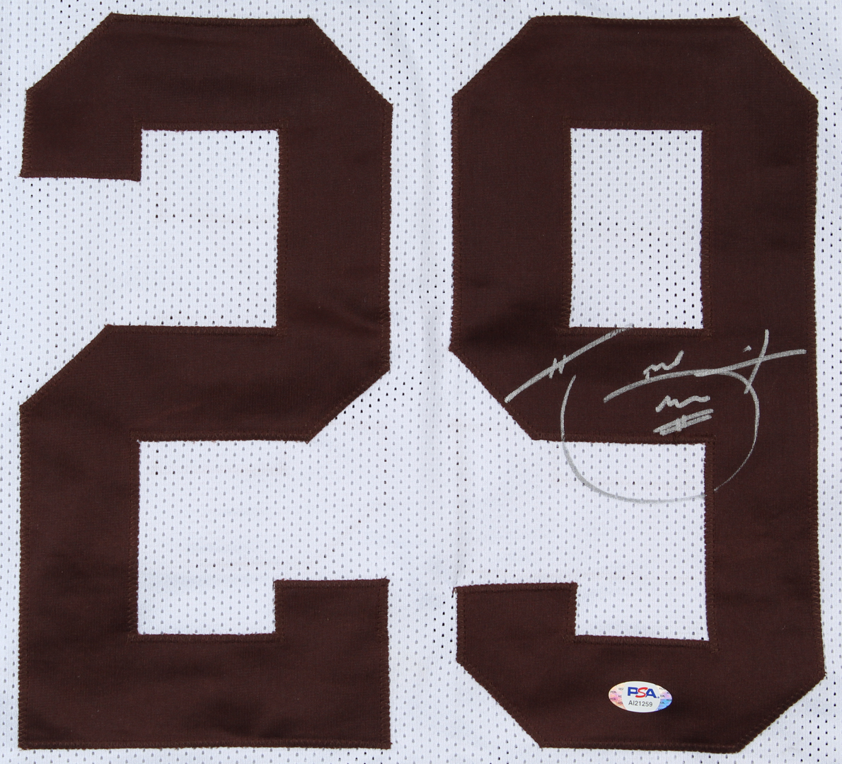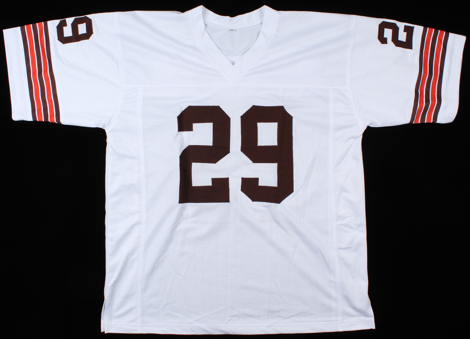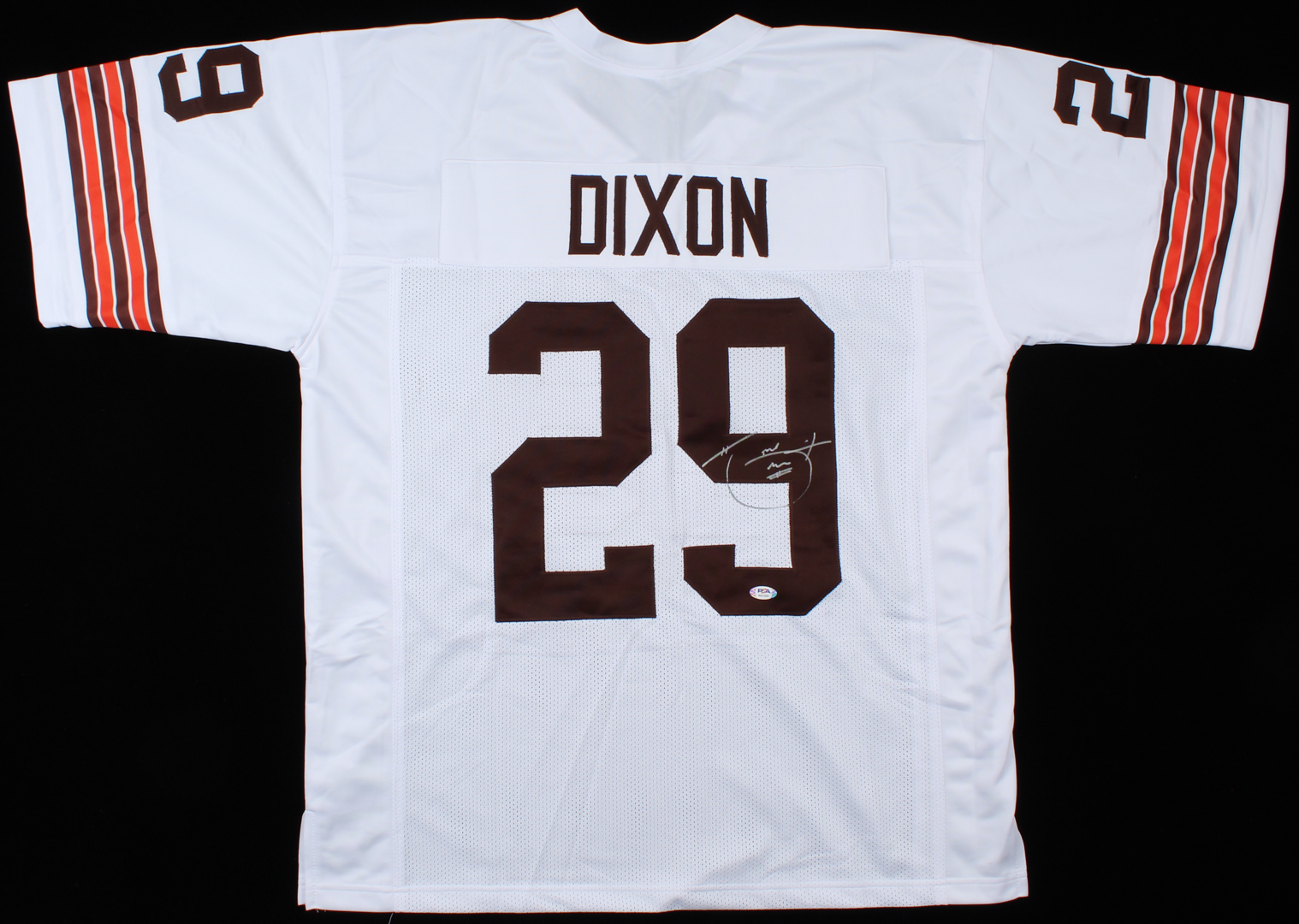 Custom on-field style jersey. Everything sewn on, size XL. Hand-signed by Hanford Dixon.
