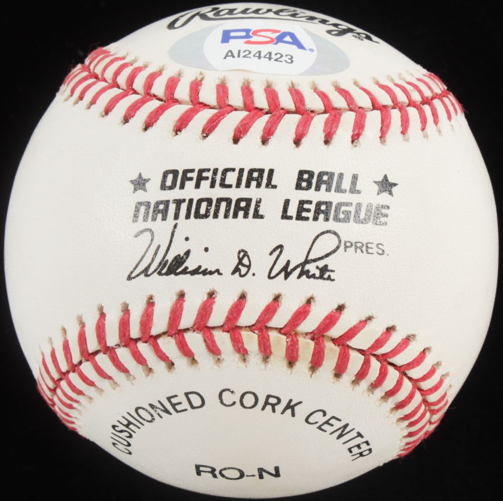 Rawlings Official National League Baseball. Hand-signed by Hank Aaron (Atlanta Braves, HOF).