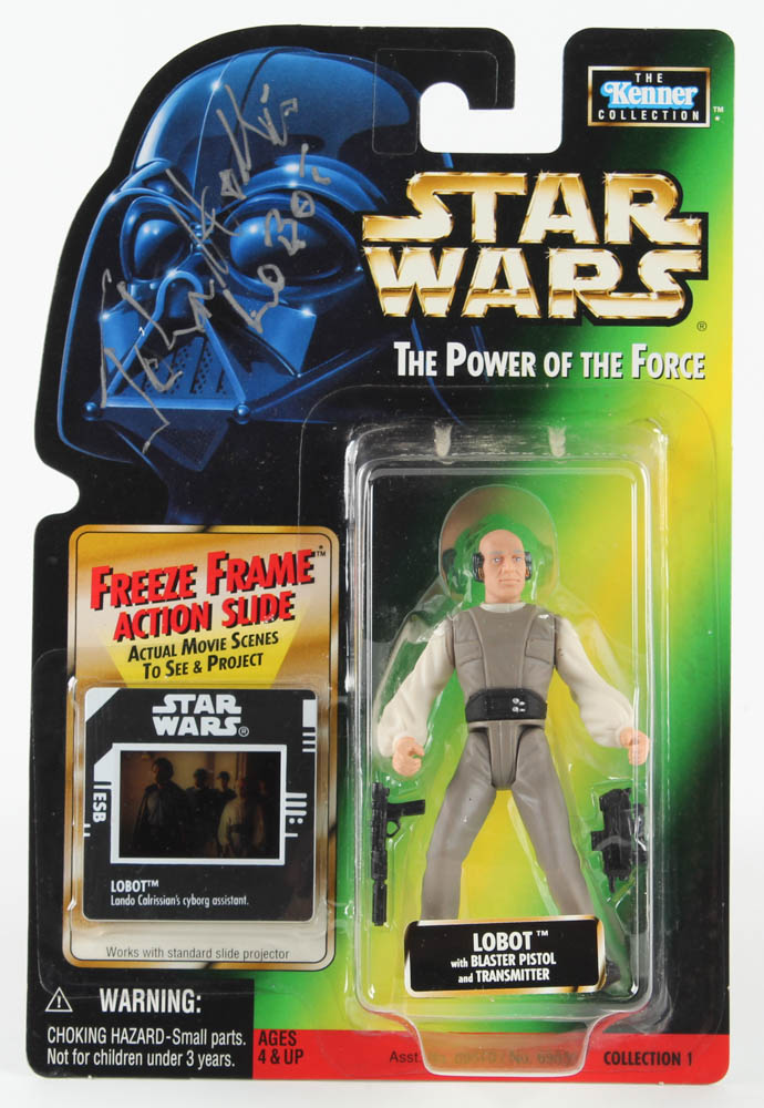 Kenner "Star Wars The Power of the Force" Lobot action figure. Hand-signed on the box by John Hollis (D. 2005).