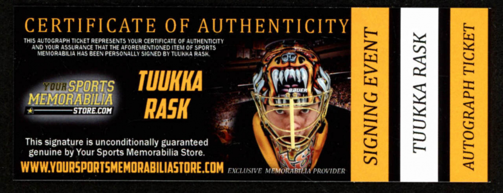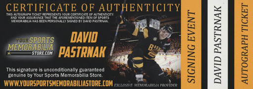 The lot / autograph(s) includes an official David Pastrnak & Tuukka Rask player hologram and matching COA for authenticity purposes.
