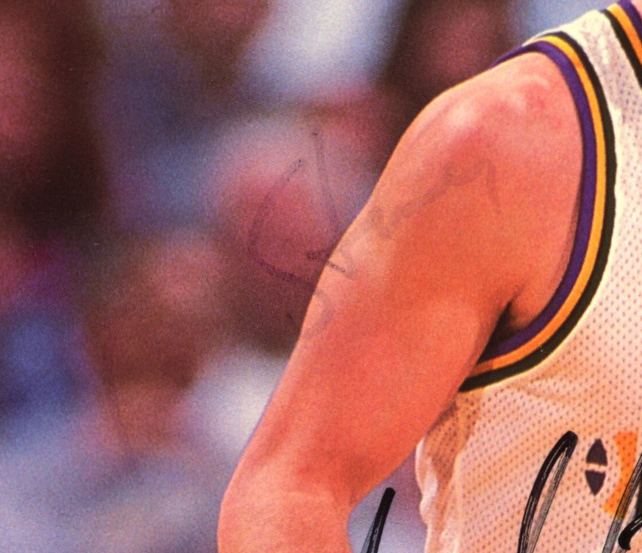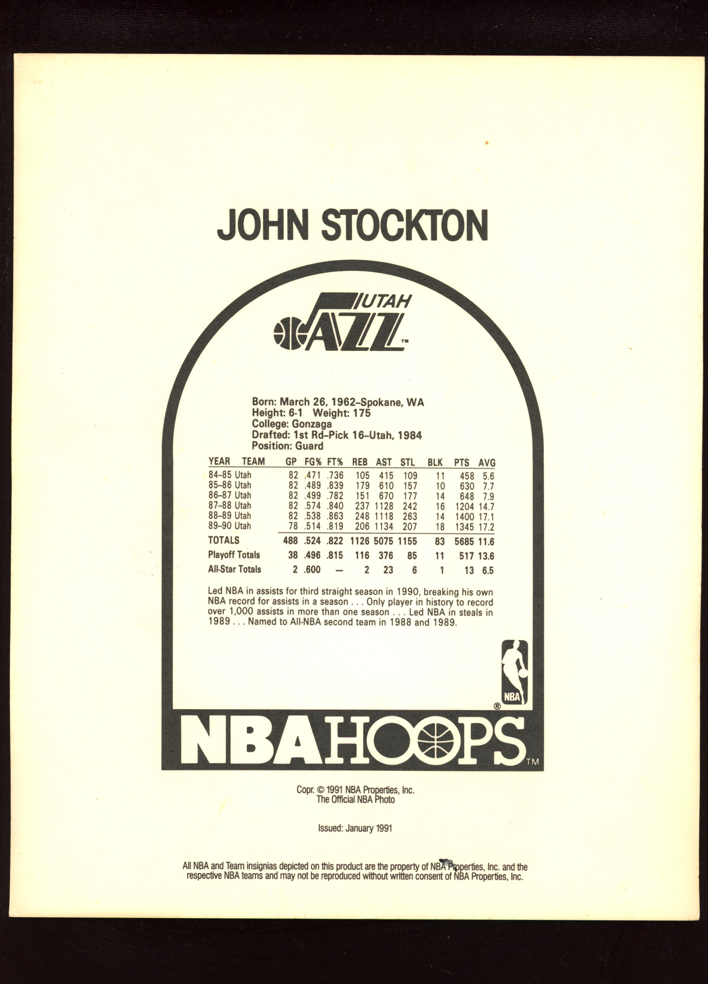 Photo measures 8" x 10" in size and has been hand-signed by John Stockton (Utah Jazz, HOF). Please note, a personalization has been removed.