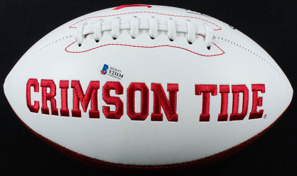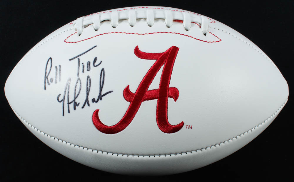 Alabama Crimson Tide logo football has been hand-signed by Nick Saban.