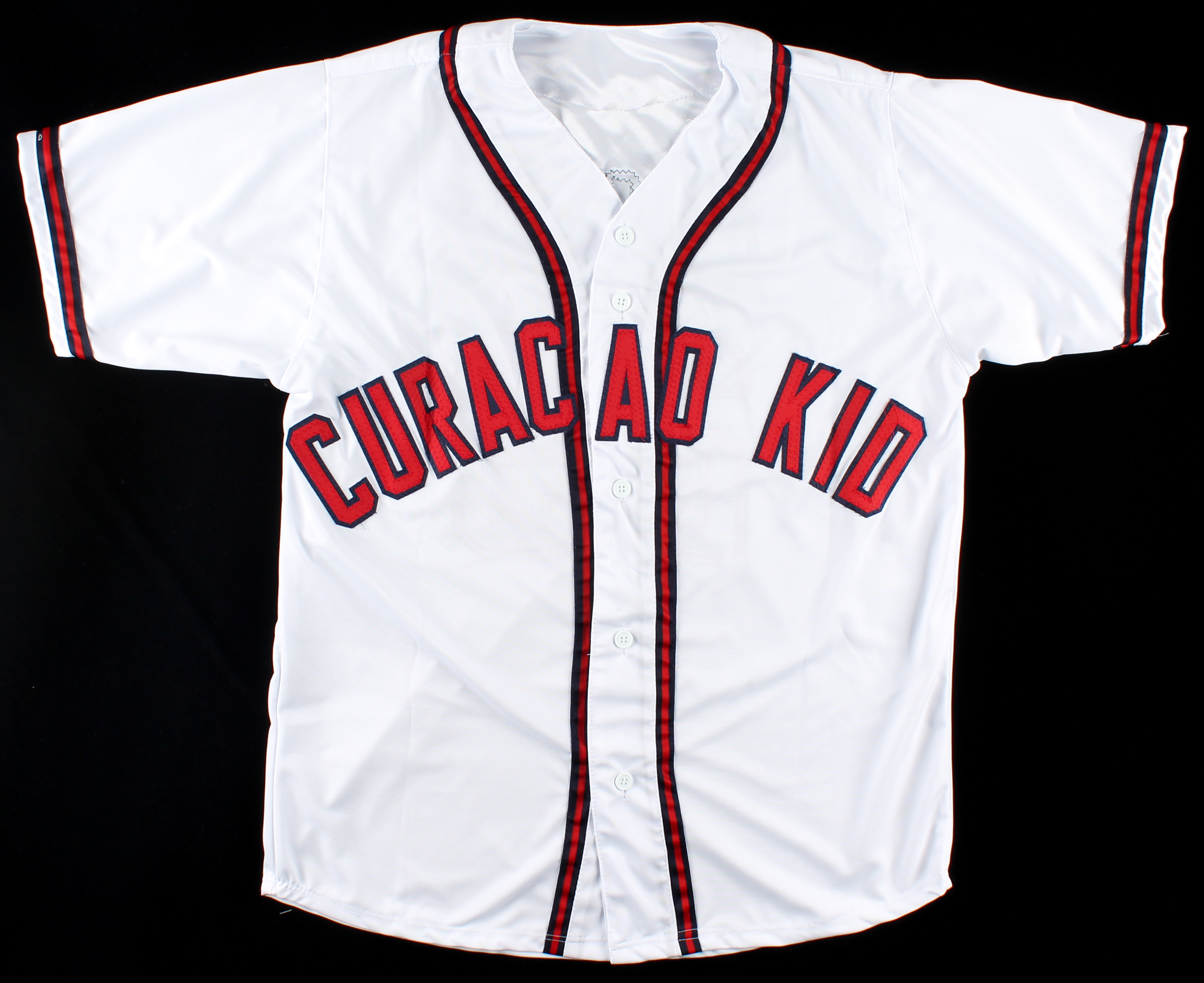 Custom on-field style jersey. Everything is sewn on, size XL. Has been hand-signed by Andruw Jones.