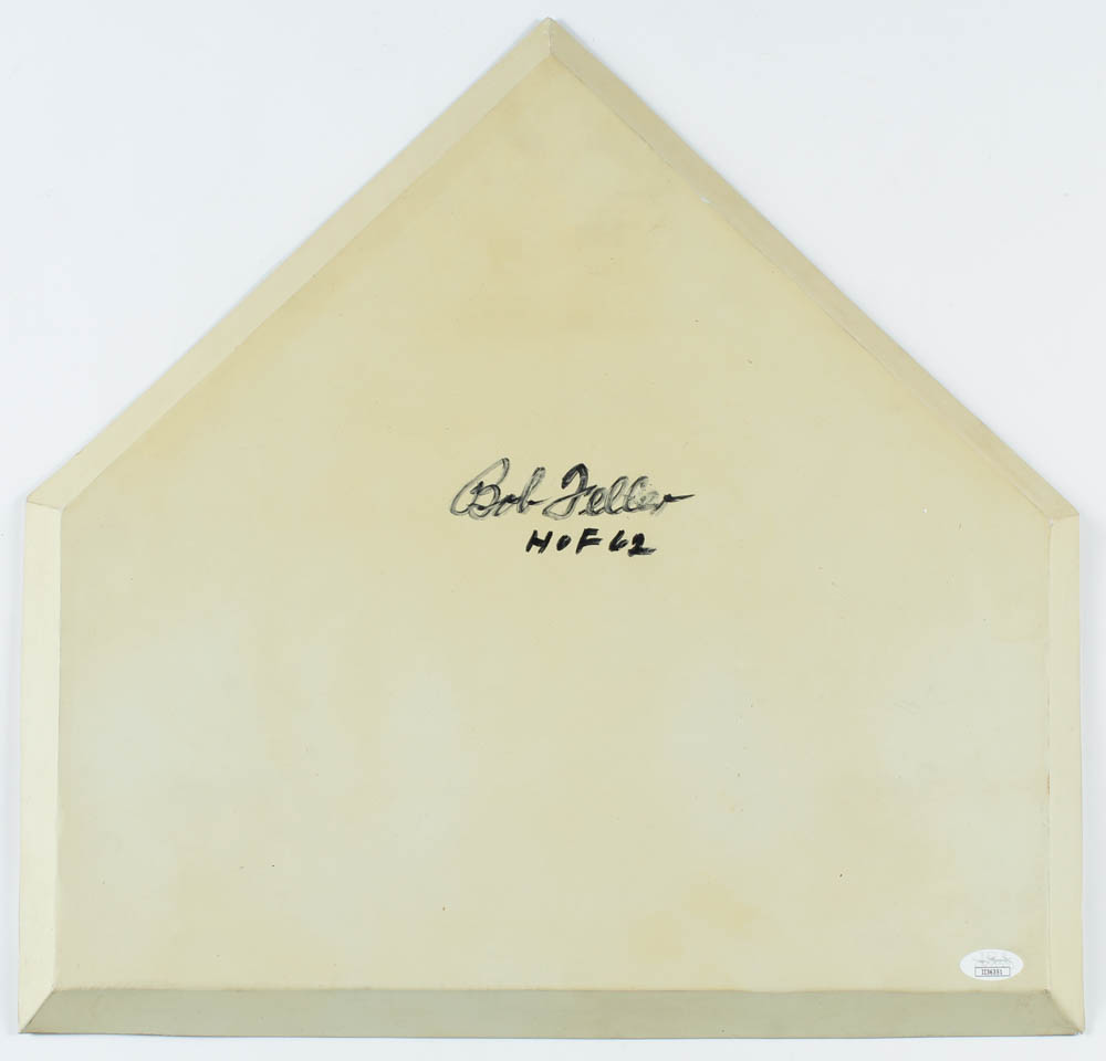 Bob Feller Signed Baseball Home Plate Inscribed "HOF 62" (JSA COA)