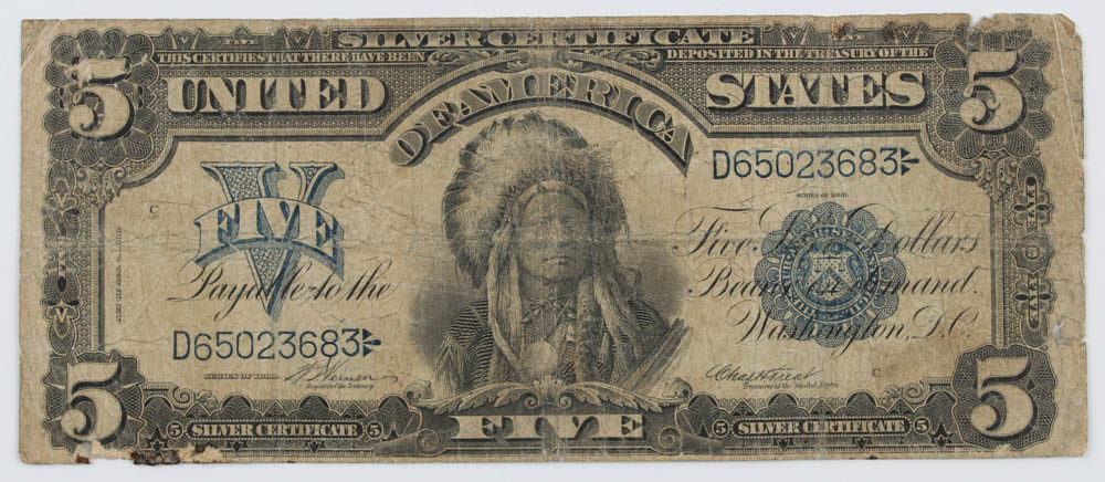 1899 $5 Five-Dollar "Indian Chief" U.S. Silver Certificate Large-Size Bank Note