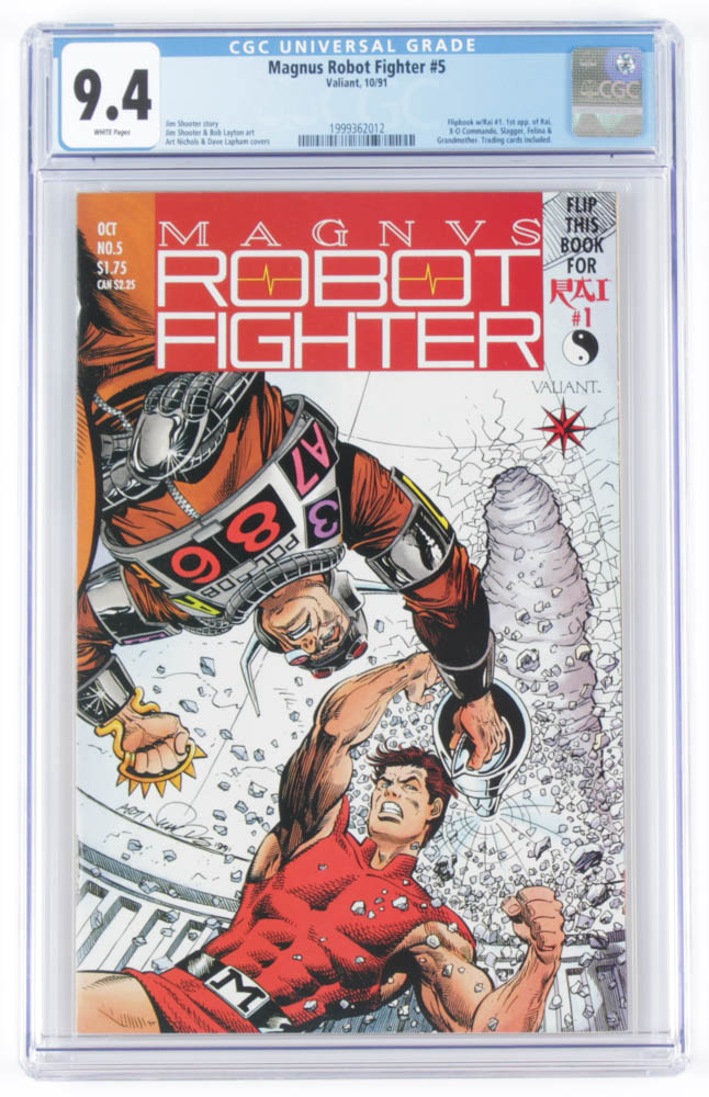 1991 "Magnus Robot Fighter" Issue #5 Marvel Comic Book. Comic book has been graded CGC 9.4. Please see images for details regarding the condition of the comic book. Please note, Valiant #1 is on the backside of comic.