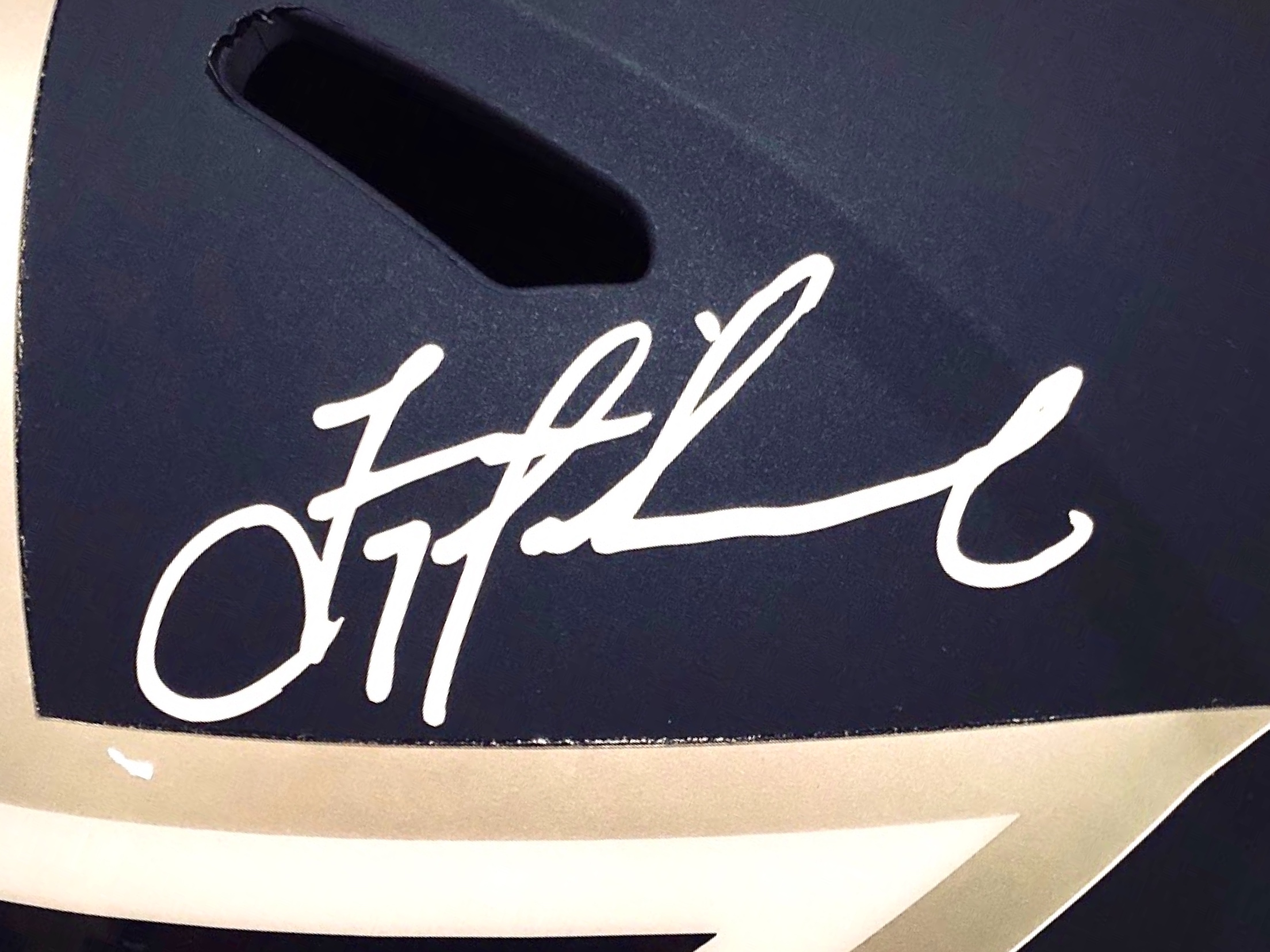 Riddell Dallas Cowboys full-size replica AMP alternate speed helmet. Has been hand-signed by Troy Aikman (HOF).