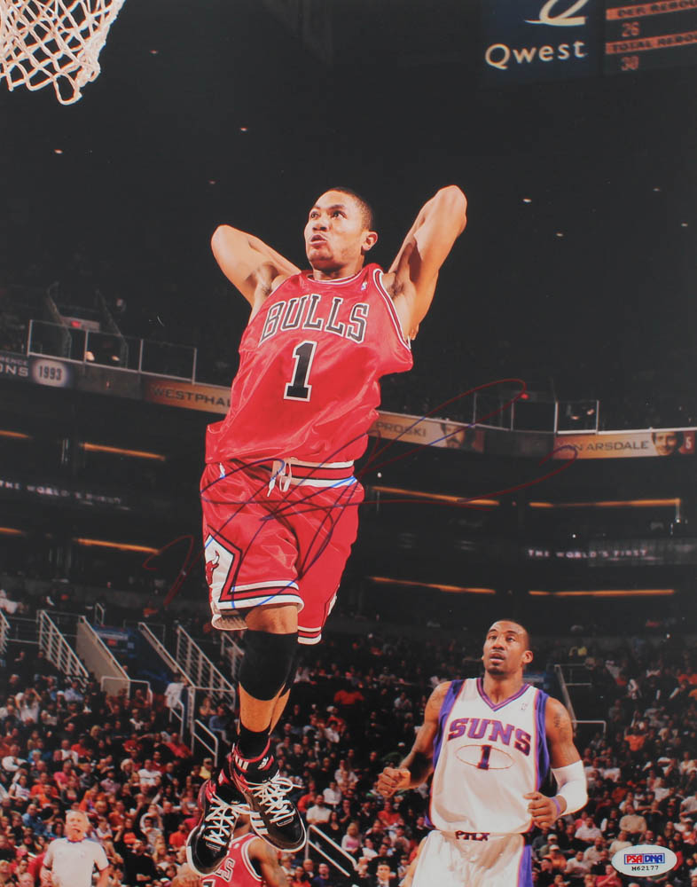 Photo measures 11" x 14" in size. Has been hand-signed by Derrick Rose (Chicago Bulls).