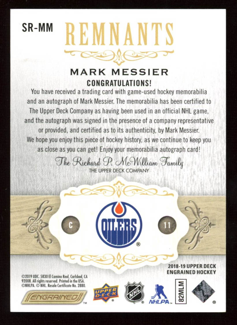 Mark Messier 2018-19 Upper Deck Engrained Signature Remnants #SRMM