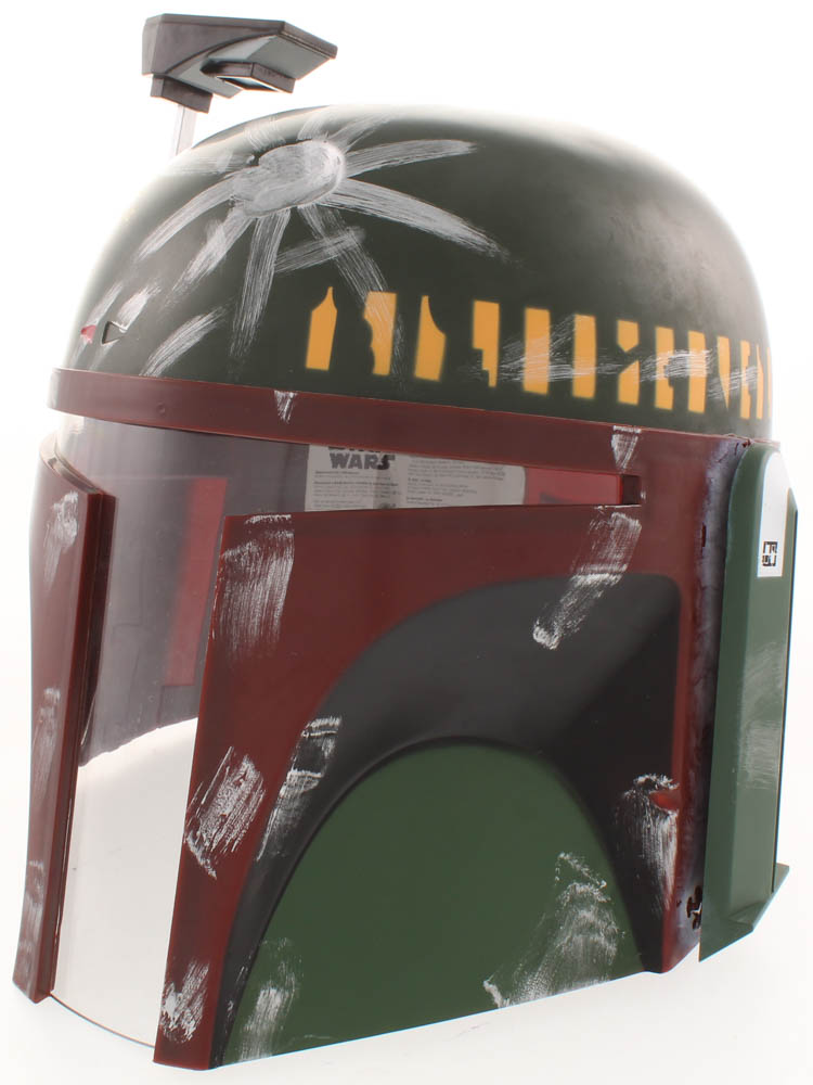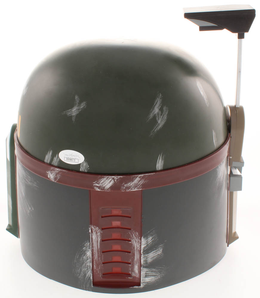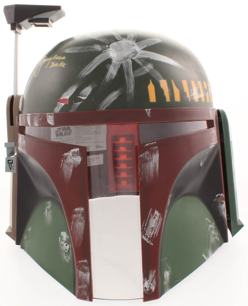 Rubie's Star Wars Boba Fett Deluxe Edition full-size replica helmet. Hand-signed and inscribed by Jeremy Bulloch. (D. 2020)