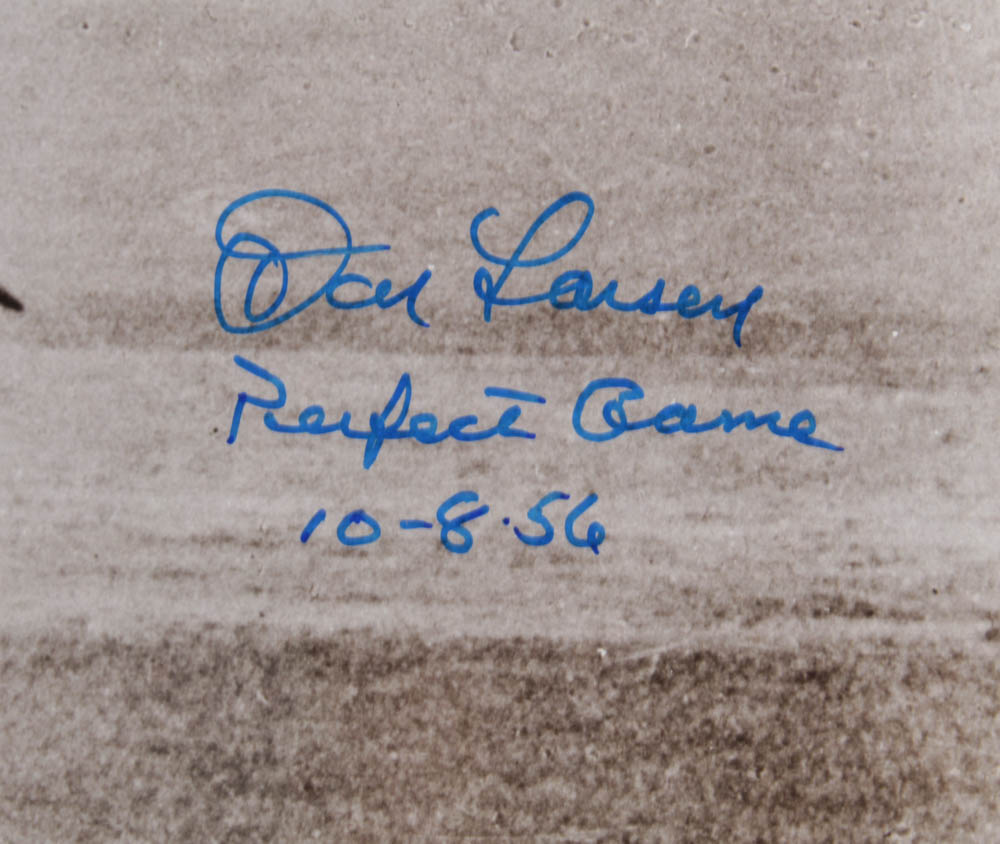 Don Larsen Signed Yankees 1956 World Series 8x10 Photo Inscribed "Perfect Game" & "10-8-56" (JSA COA)