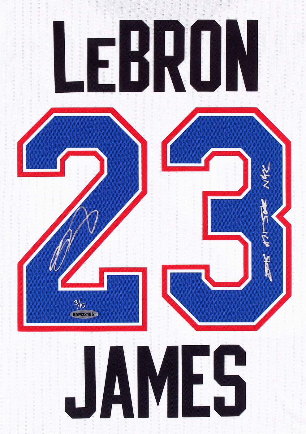 Adidas authentic swingman jersey. Everything is printed on, size 2XL. Hand-signed and inscribed in silver paint pen by LeBron James.The autograph includes an official Upper Deck Authenticated (UDA) hologram and matching COA for authenticity purposes.