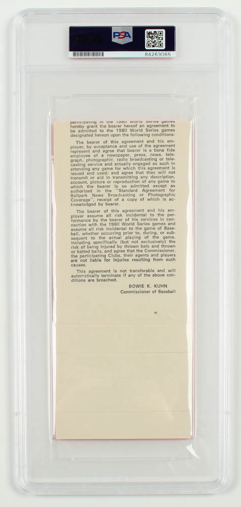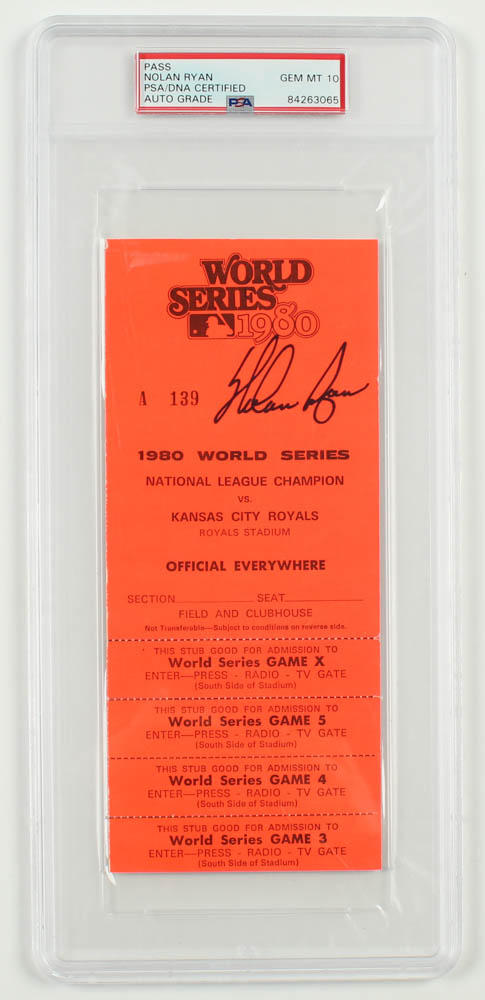Nolan Ryan Signed 1980 VIP All Access World Series Game Pass (PSA Encapsulated)
