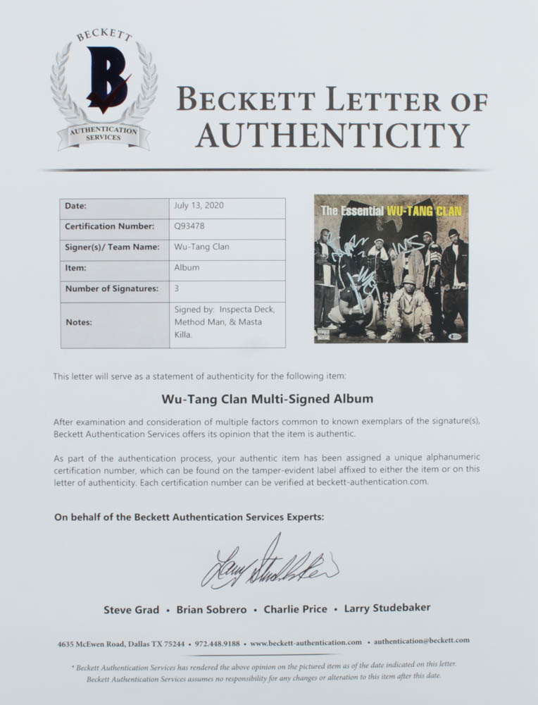 Inspecta Deck, Method Man & Masta Killa Signed "The Essential Wu-Tang Clan" Vinyl Record Album (Beckett LOA)