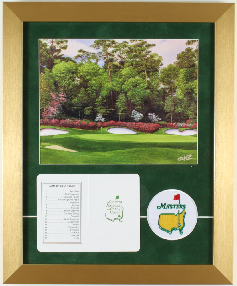 The Masters 14x17 Custom Framed Print Display with Official Augusta National Score Card & Masters Patch
