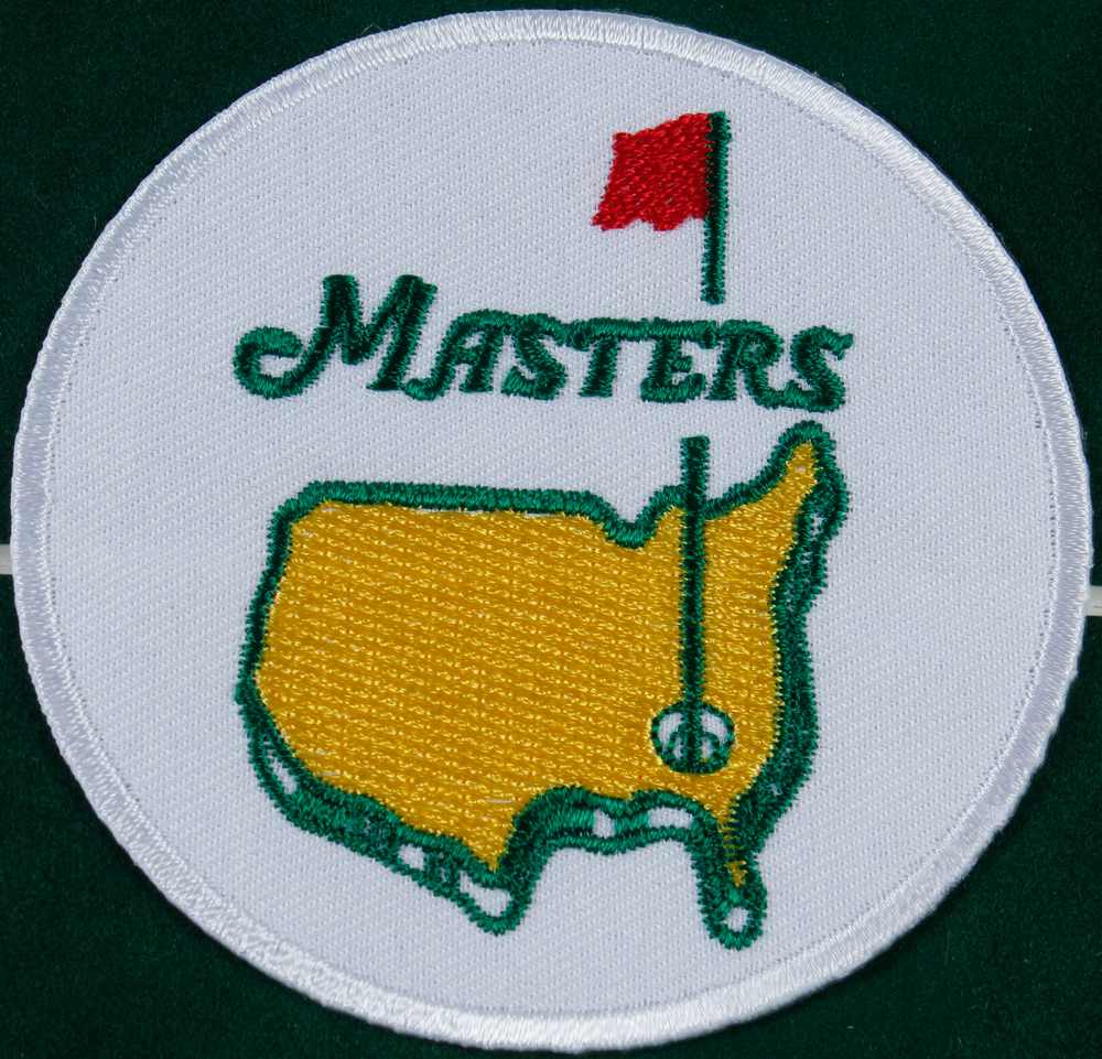 Custom frame measures 14" x 17" in size and features a print of "Augusta National Golf Club". Display also features an official Augusta National score card and Masters patch.