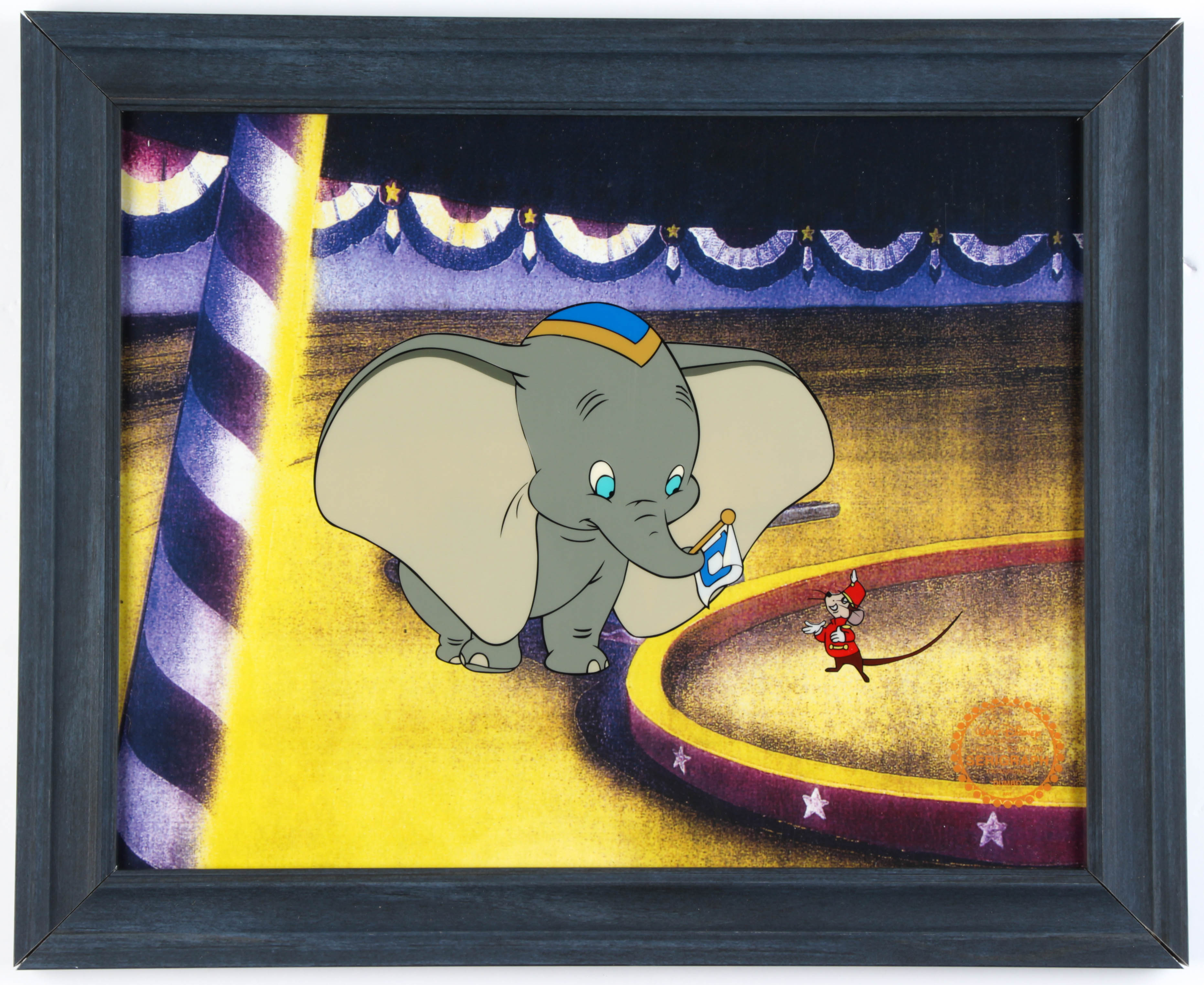 Custom frame measures approximately 13.5" x 16.5" in size and features a serigraph cel from "Dumbo". The cel is limited edition.