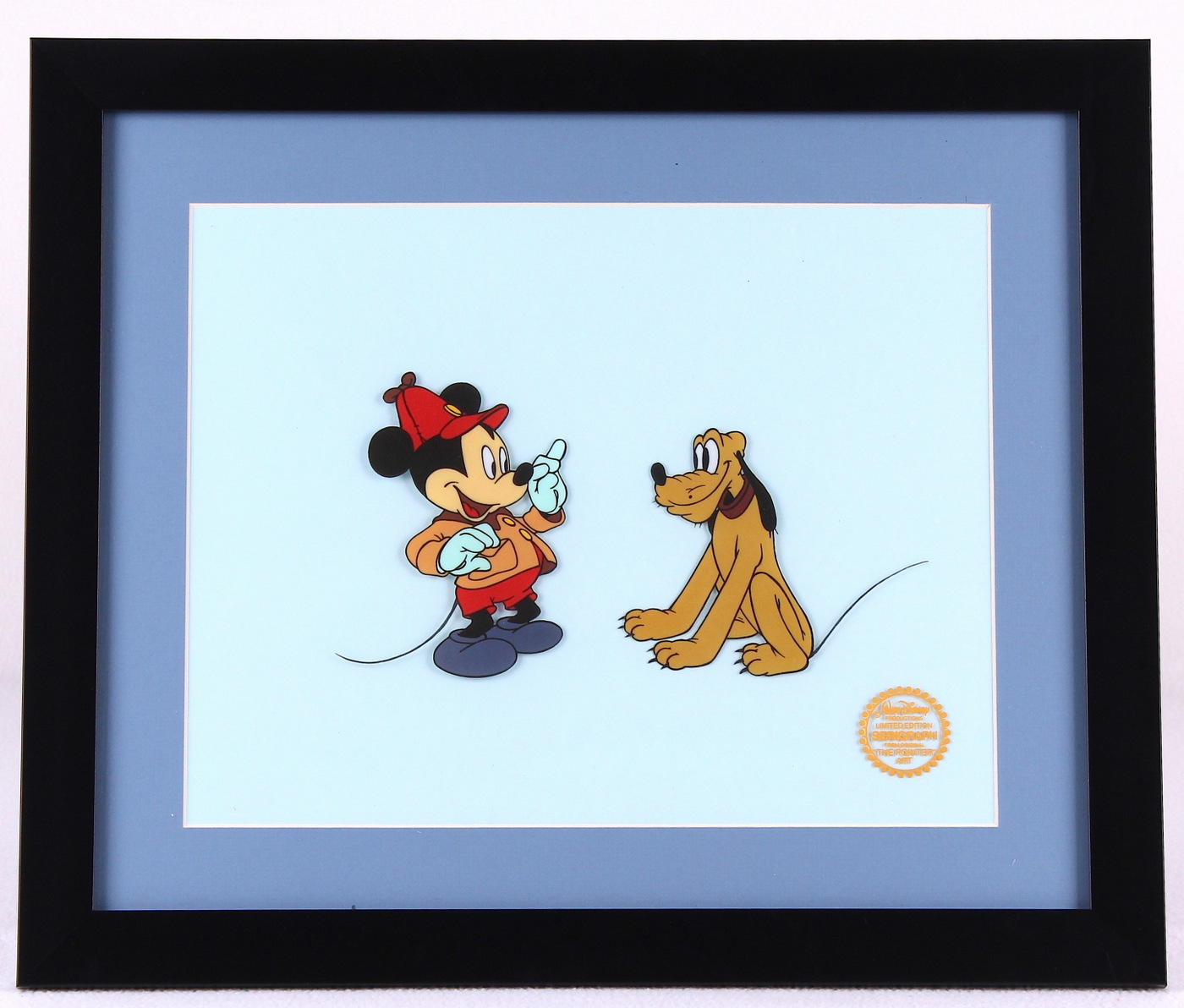 Mickey Mouse and Pluto "The Pointer Art" LE 16x19 Custom Framed Animation Sericel