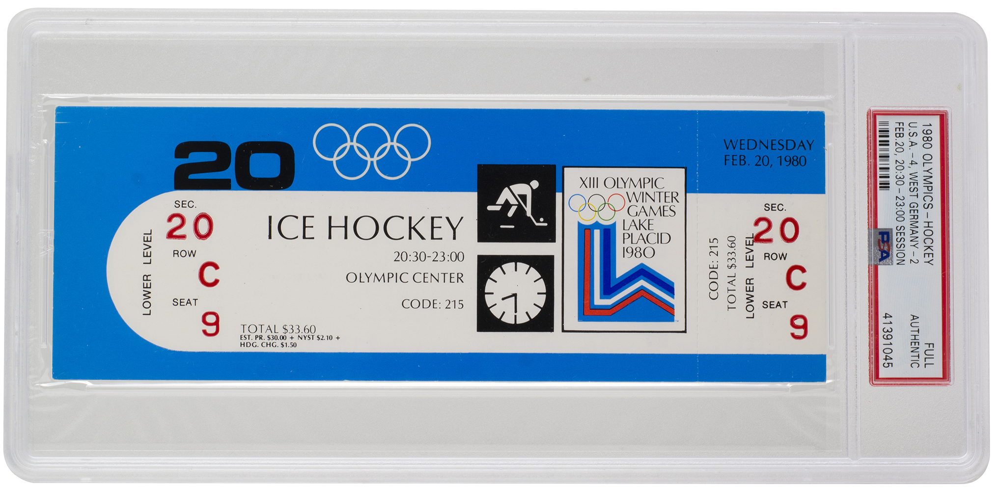 1980 Olympics Ice Hockey Ticket Stub (PSA Encapsulated)