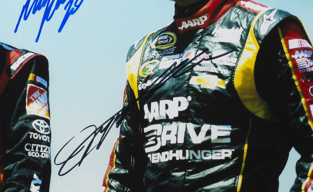 Custom frame measures 11" x 14" in size and has been hand-signed by Jeff Gordon and Matt Kenseth..