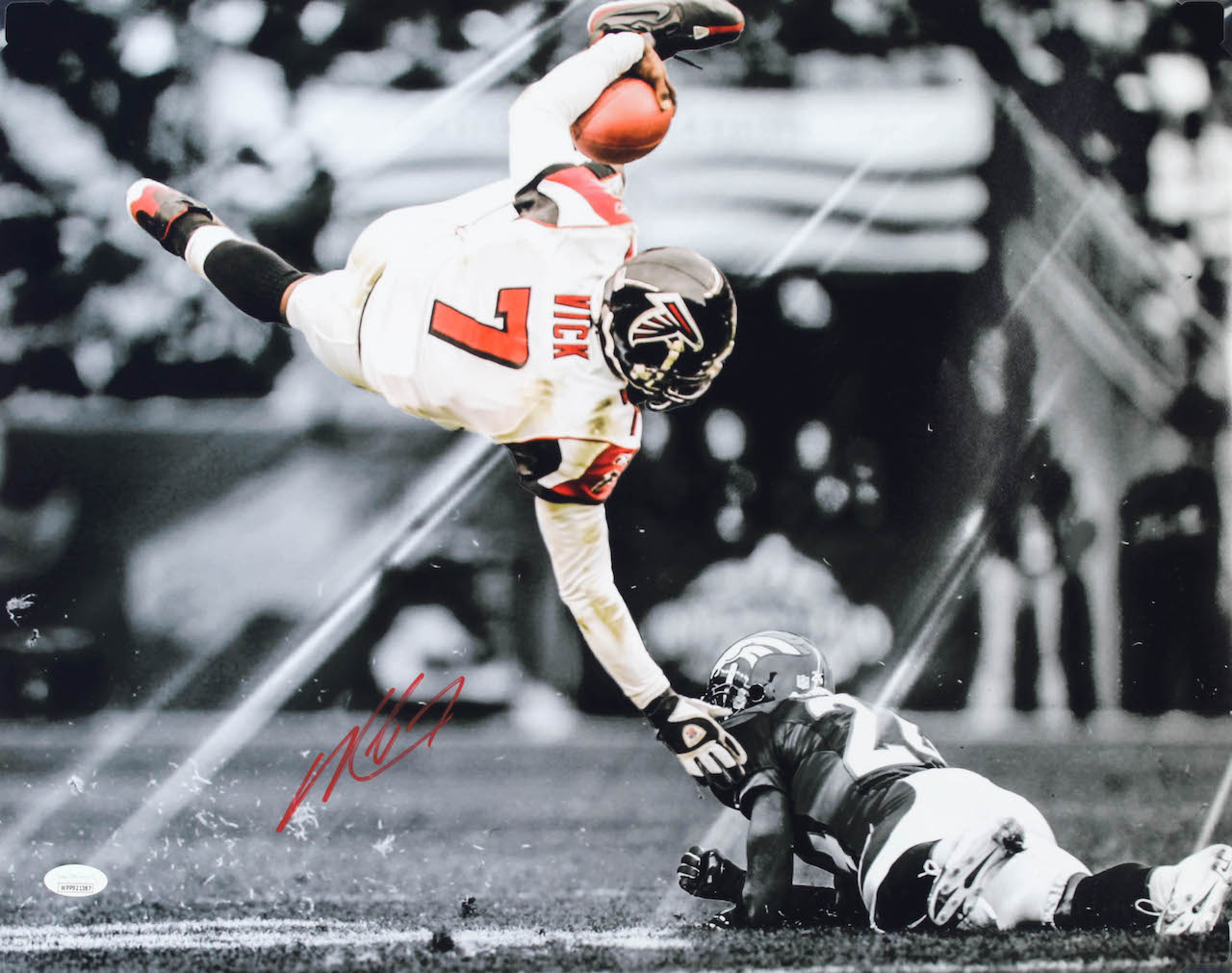 Photo measures 16" x 20" in size and has been hand-signed by Micheal Vick (Atlanta Falcons).