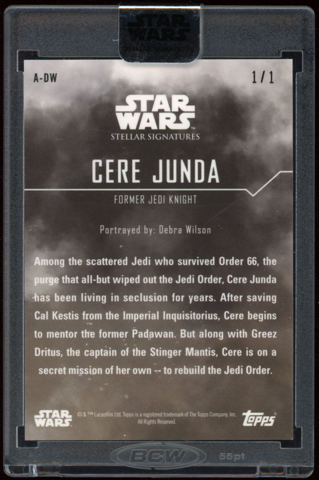 Debra Wilson 2020 Star Wars Stellar Signatures Galactic Black #ADW Cere Junda (Topps Encapsulated)
