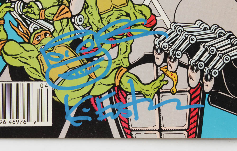 This original Teenage Mutant Ninja Turtles (TMNT) comic book is hand-signed along with an original Turtles sketch by the co-creator of the Teenage Mutant Ninja Turtles, Kevin Eastman.