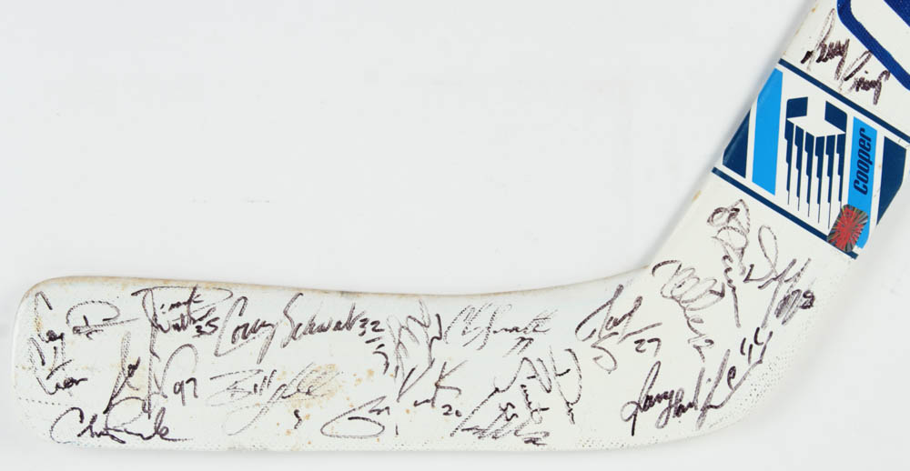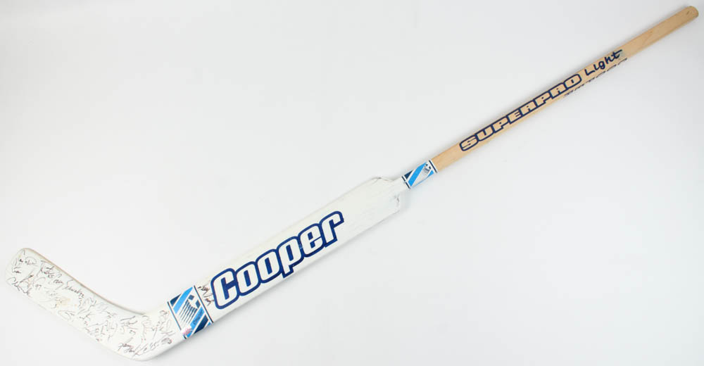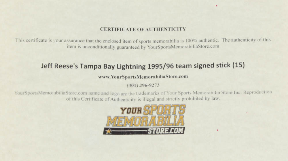 Cooper full-size hockey stick. Hand-signed by (15) including Jeff Reese, Shawn Burr, Rudy Poeschek, Derek Wilkinson, Chris Gratton, Bill Houlder, Cory Cross and (8) others. (Tampa Bay Lightning)