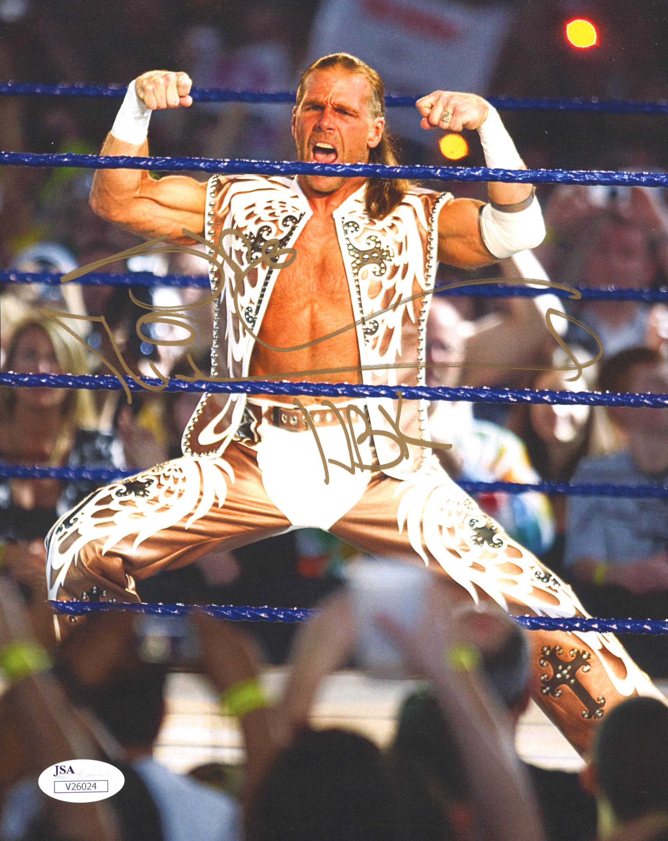 Photo measures 8" x 10" in size and has been hand-signed by Shawn Michaels.