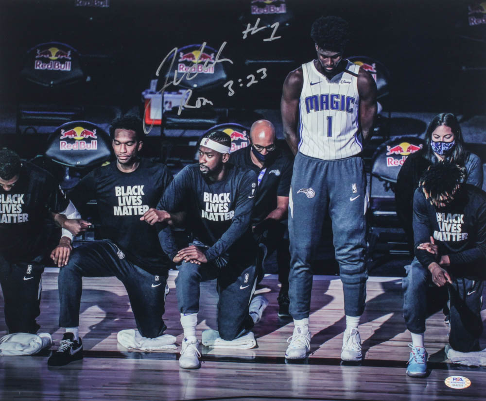 Photo measures 16" x 20" in size and has been hand-signed by Jonathan Isaac (Orlando Magic).