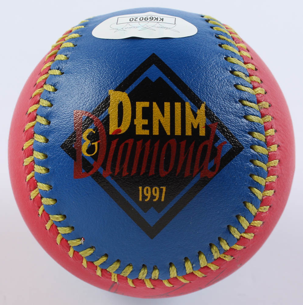 Denim Diamonds 1997 Baseball has been hand-signed by Don Baylor (D. 2017, Baltimore Orioles). Please note, the baseball shows signs of natural toning.