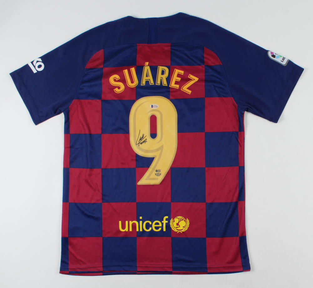Custom on-field style jersey. Everything printed on, size L. Hand-signed by Luis Suarez. Please see images regarding the condition of the jersey.