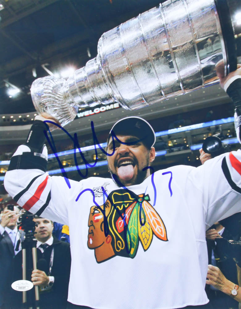 Photo measures 11" x 14" in size and has been hand-signed by Dustin Byfuglien (Chicago Blackhawks).