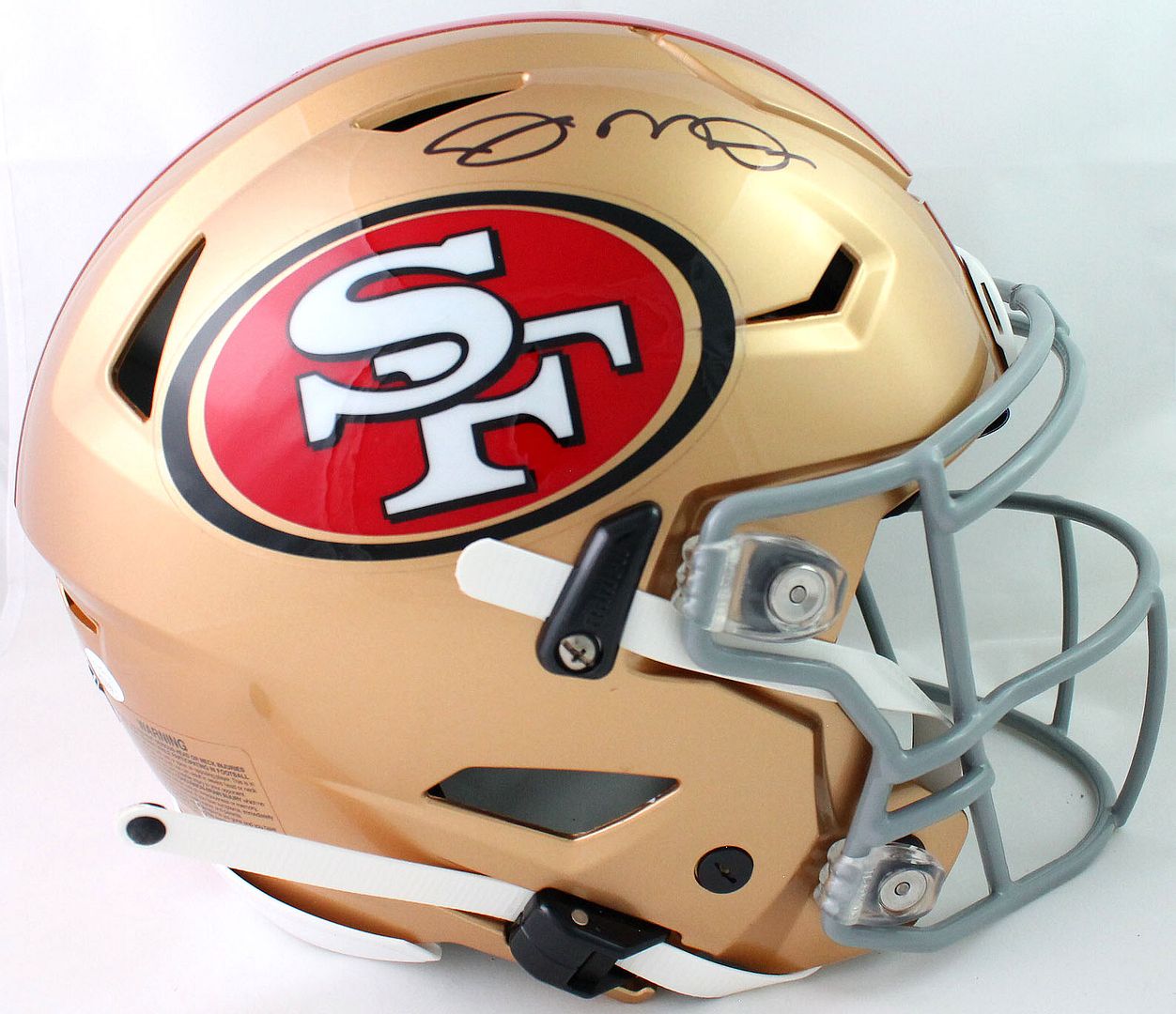 Riddell San Francisco 49ers full-size Authentic On-Field speedflex helmet. Hand-signed by Joe Montana (HOF).