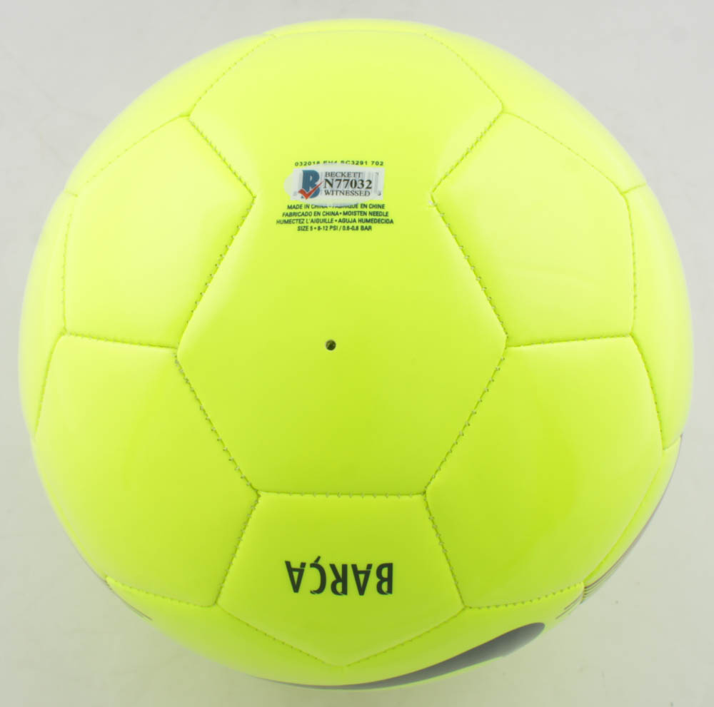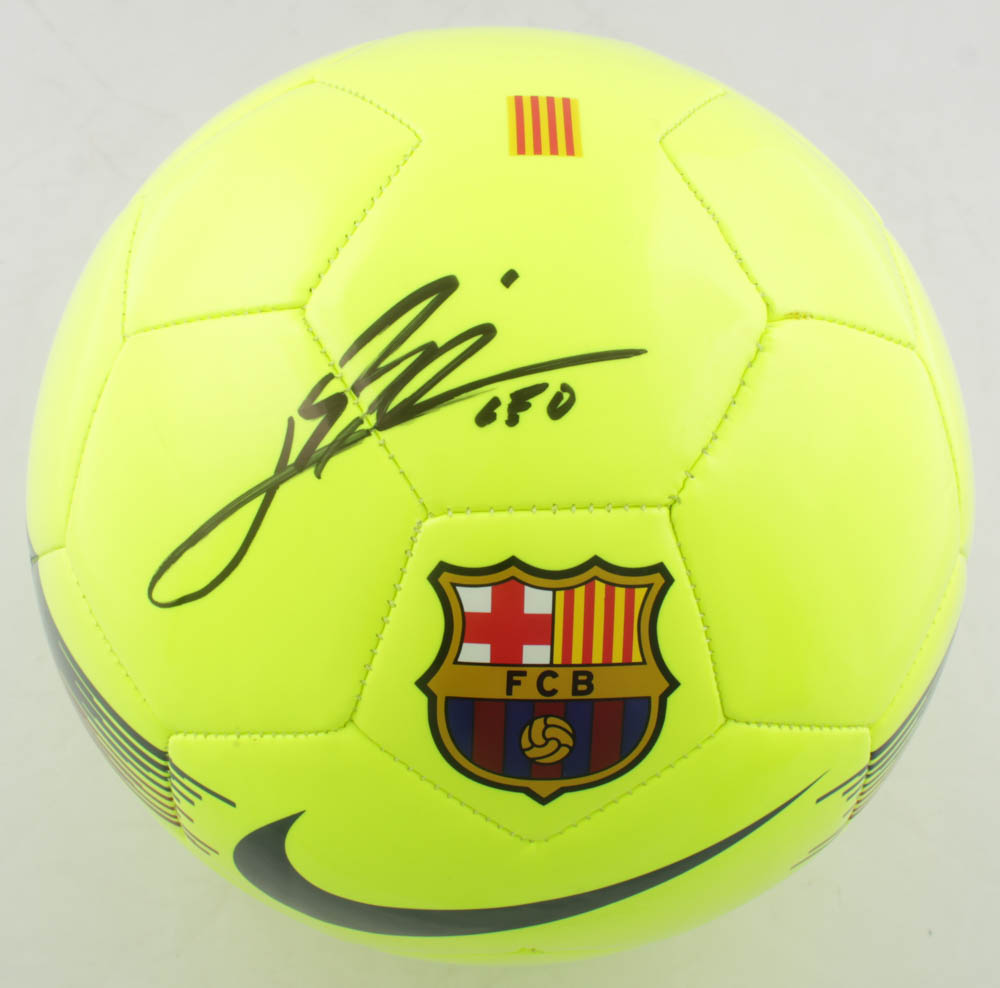 Nike FC Barcelona soccer ball has been hand-signed by Lionel Messi.