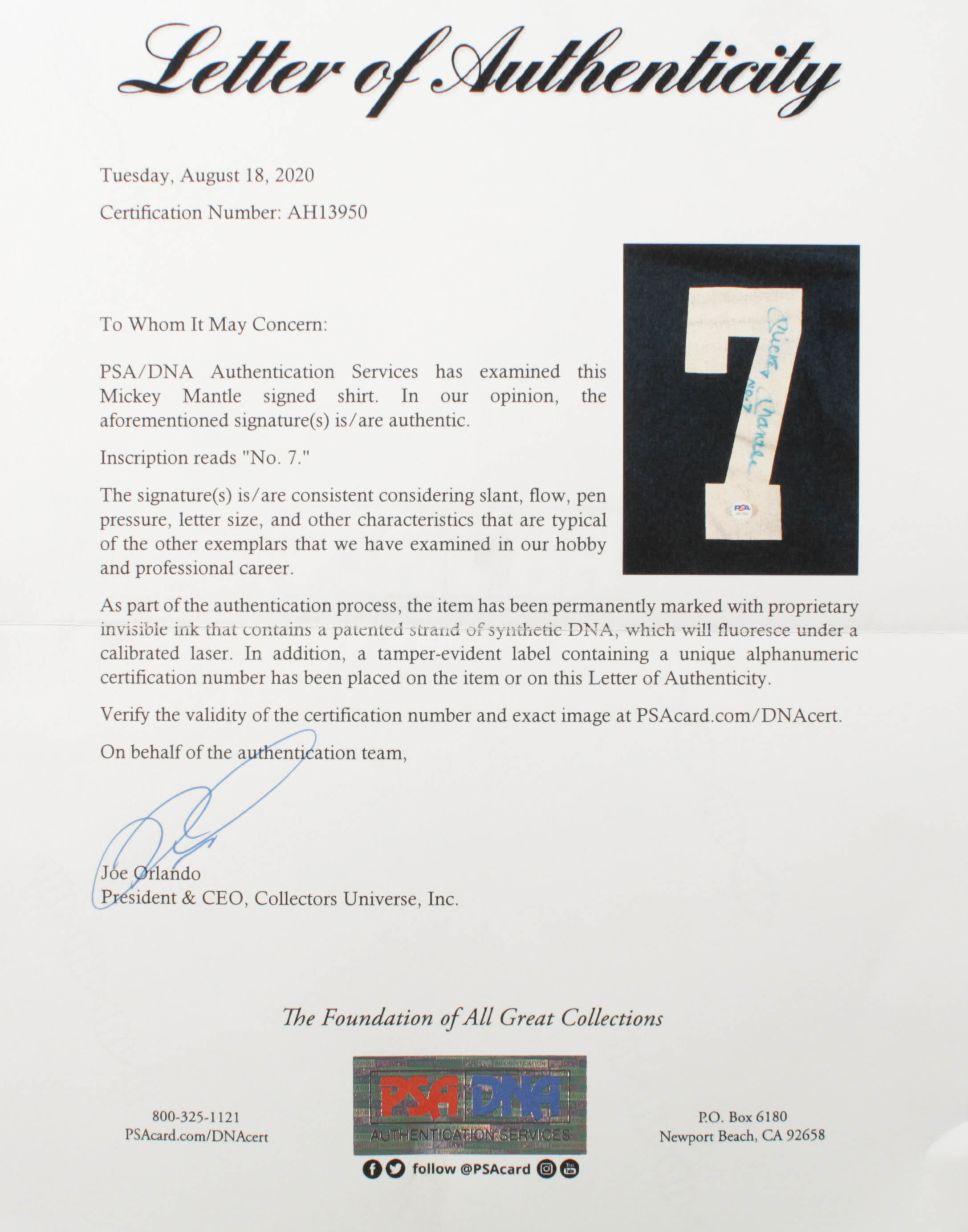 The lot / autograph(s) includes an official PSA/DNA hologram and matching LOA for authenticity purposes.