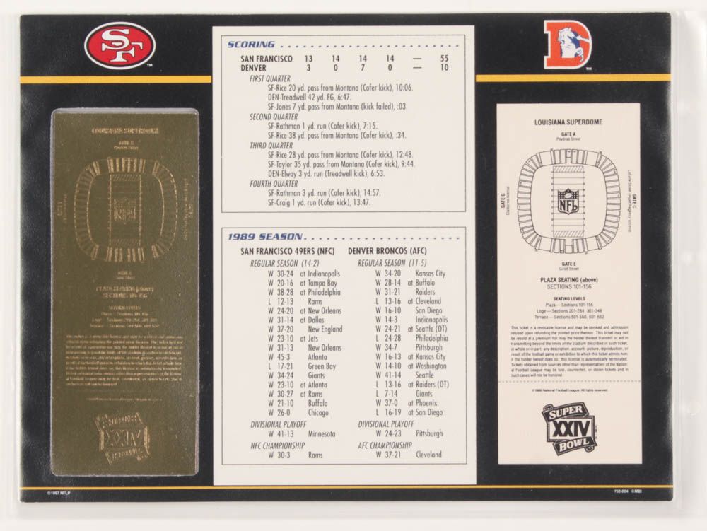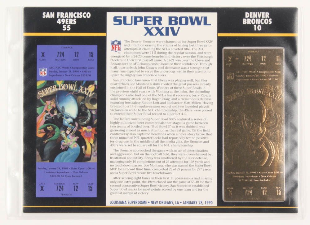1990 Commemorative Super Bowl XXIV Card with Ticket: 49ers vs Broncos