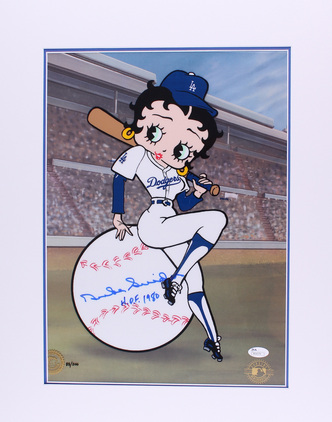 Duke Snider Signed Betty Boop Dodgers 12x16 Custom Matted LE Sericel Inscribed "H.O.F. 1980" (JSA COA)