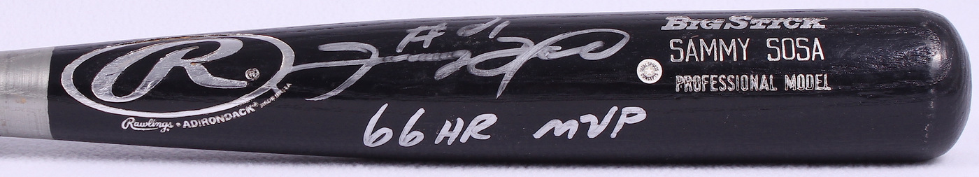 Sammy Sosa Signed Custom Engraved Full-Size Rawlings Big Stick Baseball Bat Inscribed "66 HR MVP" (Total Sports Concepts COA)