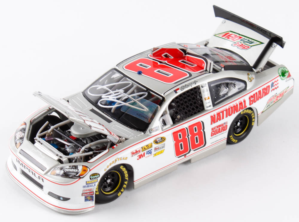 Premium die-cast car hand-signed on the windshield by Dale Earnhardt Jr. The car is limited edition to just 526 produced and includes the original packaging.